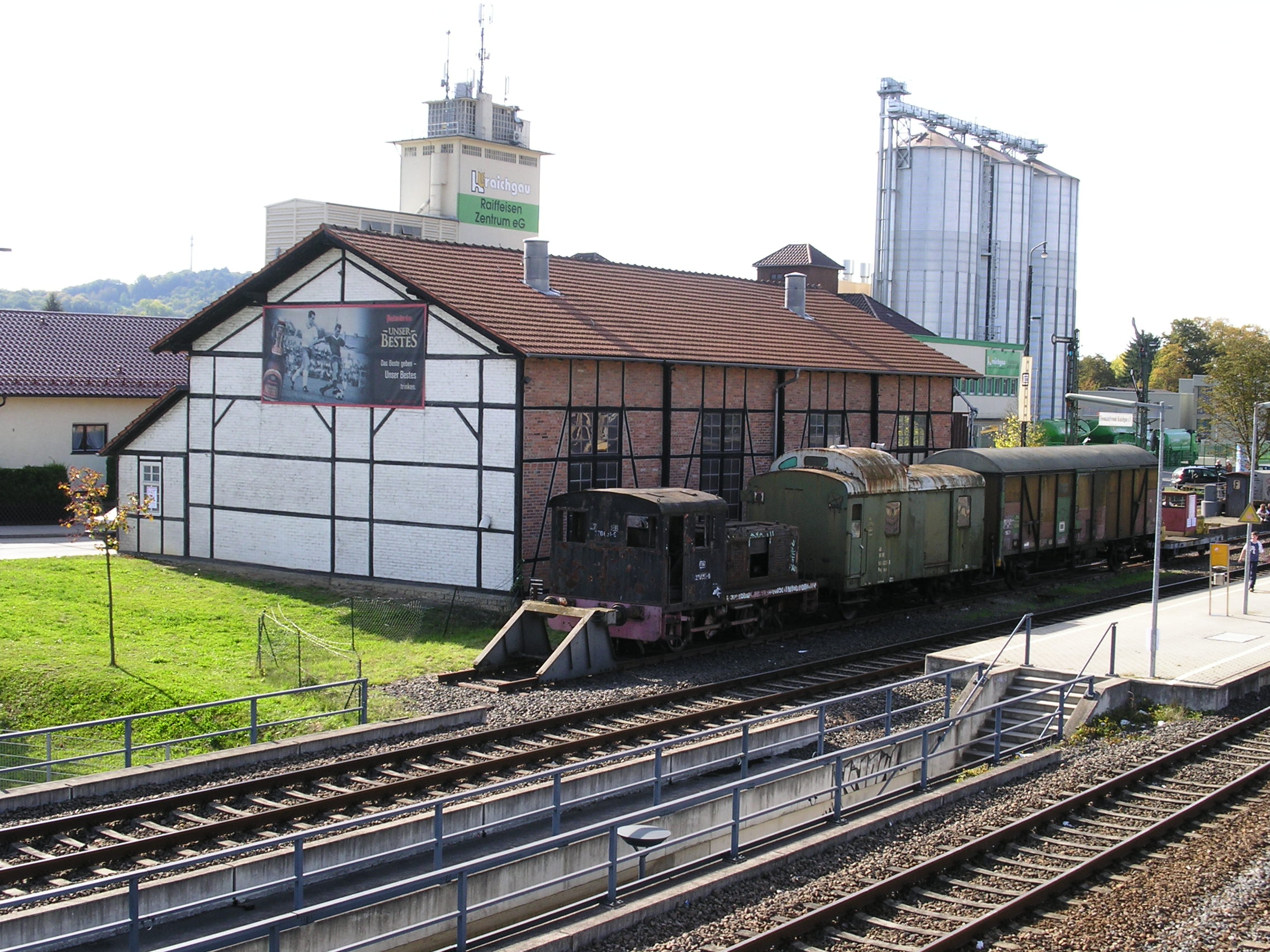 Ein zweiständiger Lokschuppen, am Hauptbahnhof Sinsheim, ist das Vereinsheim der Eisenbahnfreunde Kraichgau e. V.